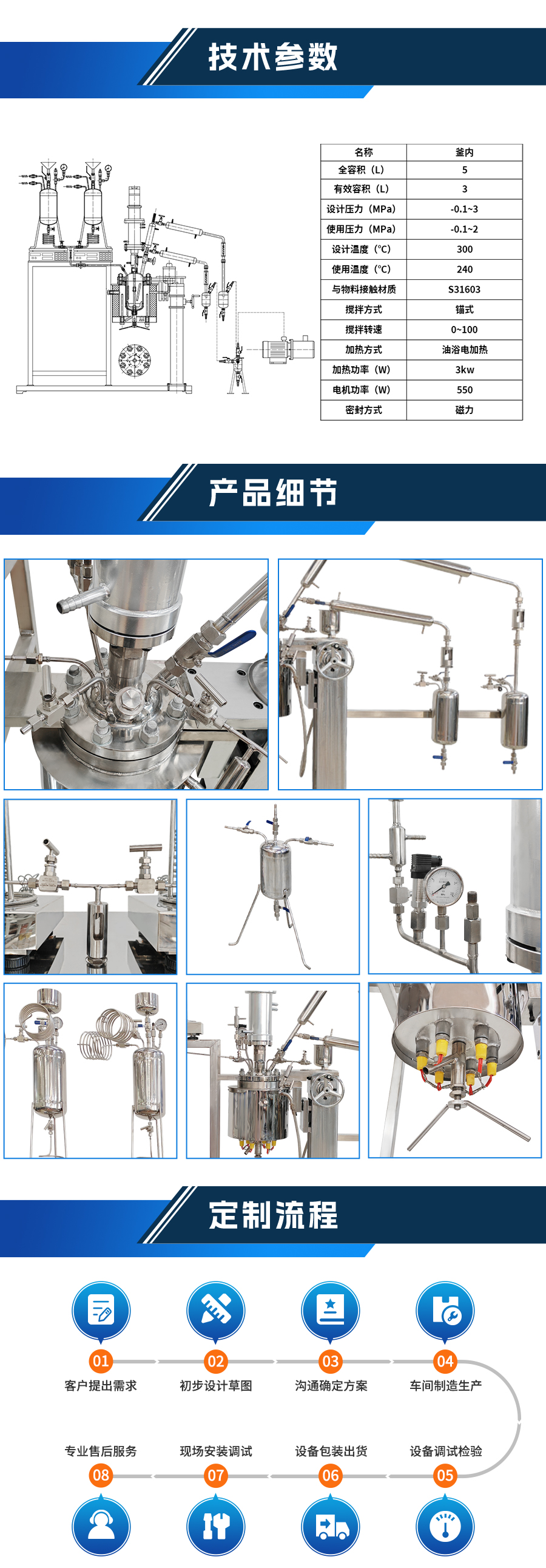 高溫酯化縮聚磁力實驗室反應(yīng)釜 - 非標定制參數(shù)
