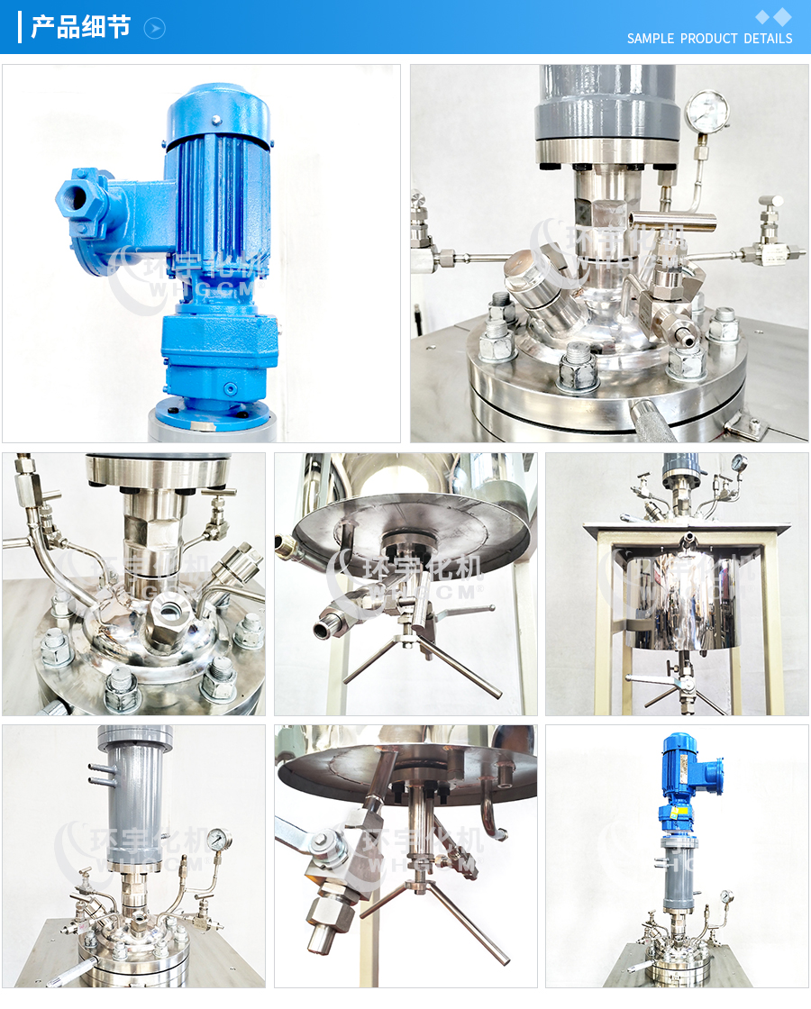 其他附件 如果用戶在釜蓋、釜體開口、內(nèi)部結(jié)構(gòu)、壓力高低、攪拌槳葉、及增加其他輔助裝置(如冷凝回流裝置、冷凝器、恒壓加料罐、接收裝置)等有特殊要求,可完全按用戶的要求加工制造