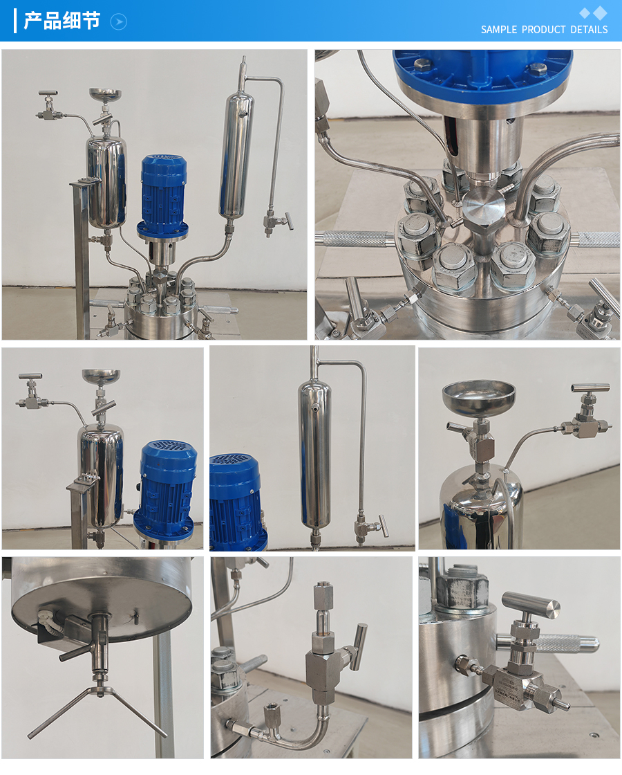 其他附件 如果用戶在釜蓋、釜體開口、內(nèi)部結構、壓力高低、攪拌槳葉、及增加其他輔助裝置(如冷凝回流裝置、冷凝器、恒壓加料罐、接收裝置)等有特殊要求,可完全按用戶的要求加工制造